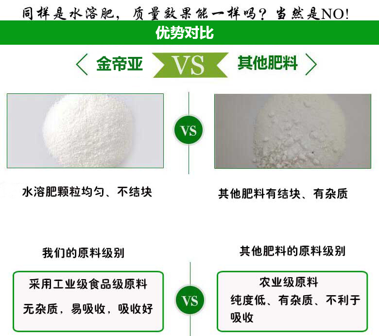 我們是平衡全營養(yǎng)型水溶肥,采用進口優(yōu)質原料,并特別添加聚谷氨酸,既含有作物生長所需要的大量元素,還添加有多種螯合態(tài)微量元素,給作物生長提供全面的養(yǎng)分,高吸收、高效果,能有效預防作物的多種缺素癥狀,適合作物萌芽、展葉、促梢時使用,也可恢復樹勢,解決植株生長的不良性狀。